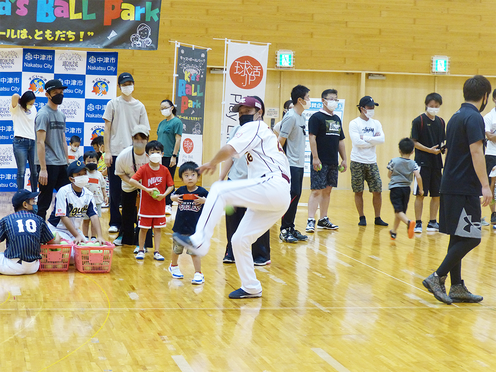 日本プロ野球選手会様より、福岡ソフトバンクホークスOB 攝津正 氏、 東北楽天ゴールデンイーグルスOB 鉄平 氏を講師にお迎えし、 60組の親子の方々にご参加いただきました。
