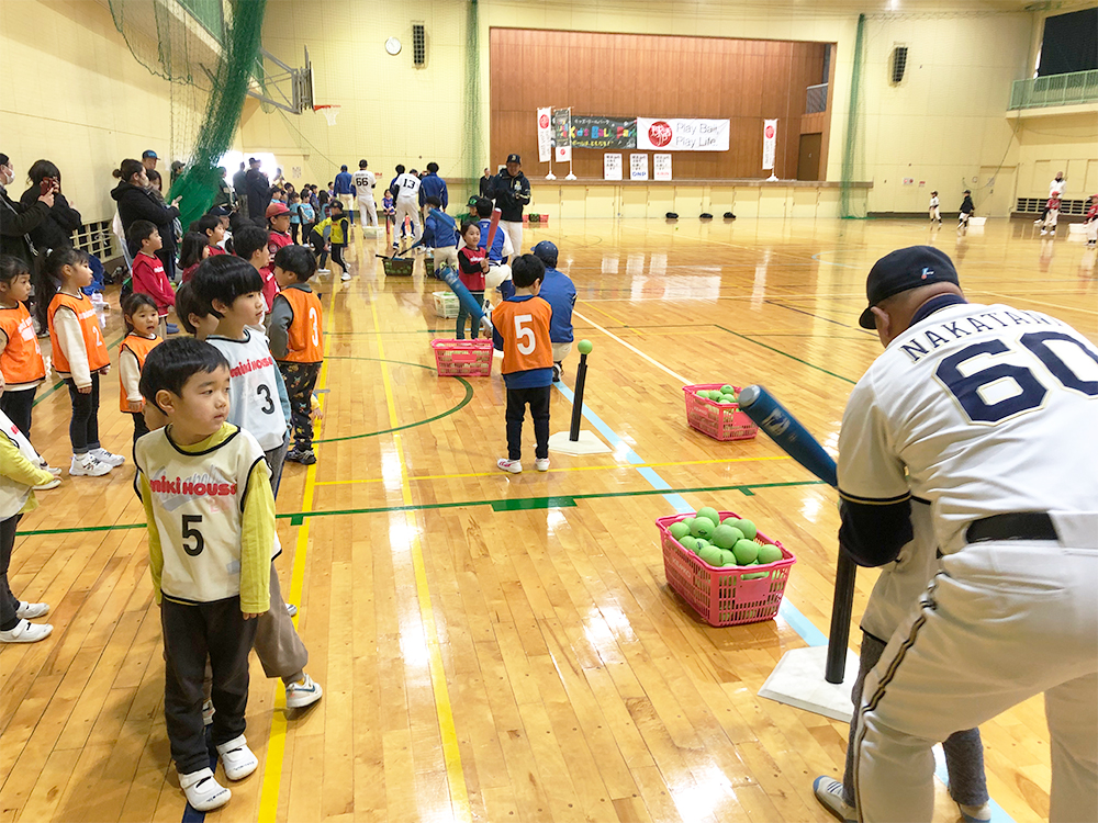 「キッズ・ボールパークin八尾」に、用具の貸し出しとお土産ボールの提供を行いました。