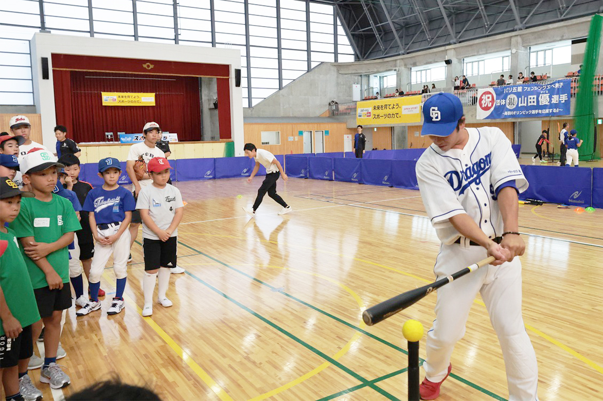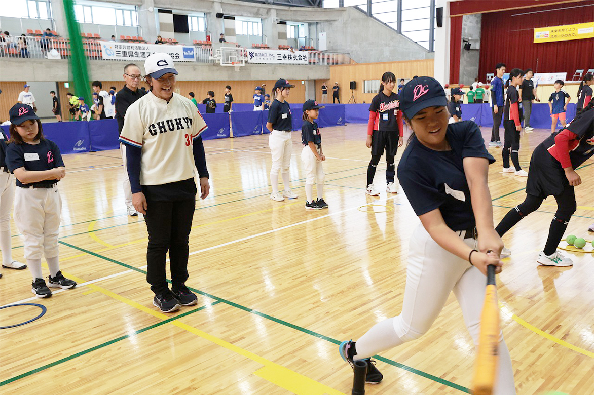 中日ドラゴンズOBの石川駿 氏と、元ソフトボール日本代表の馬場幸子 氏を講師に迎え、