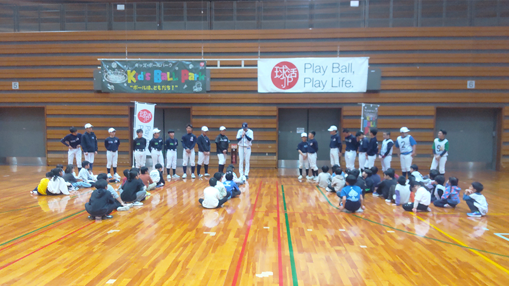 「みなくるー Kid’s Ball Park」に、用具の貸し出しとお土産ボールの提供を行いました。